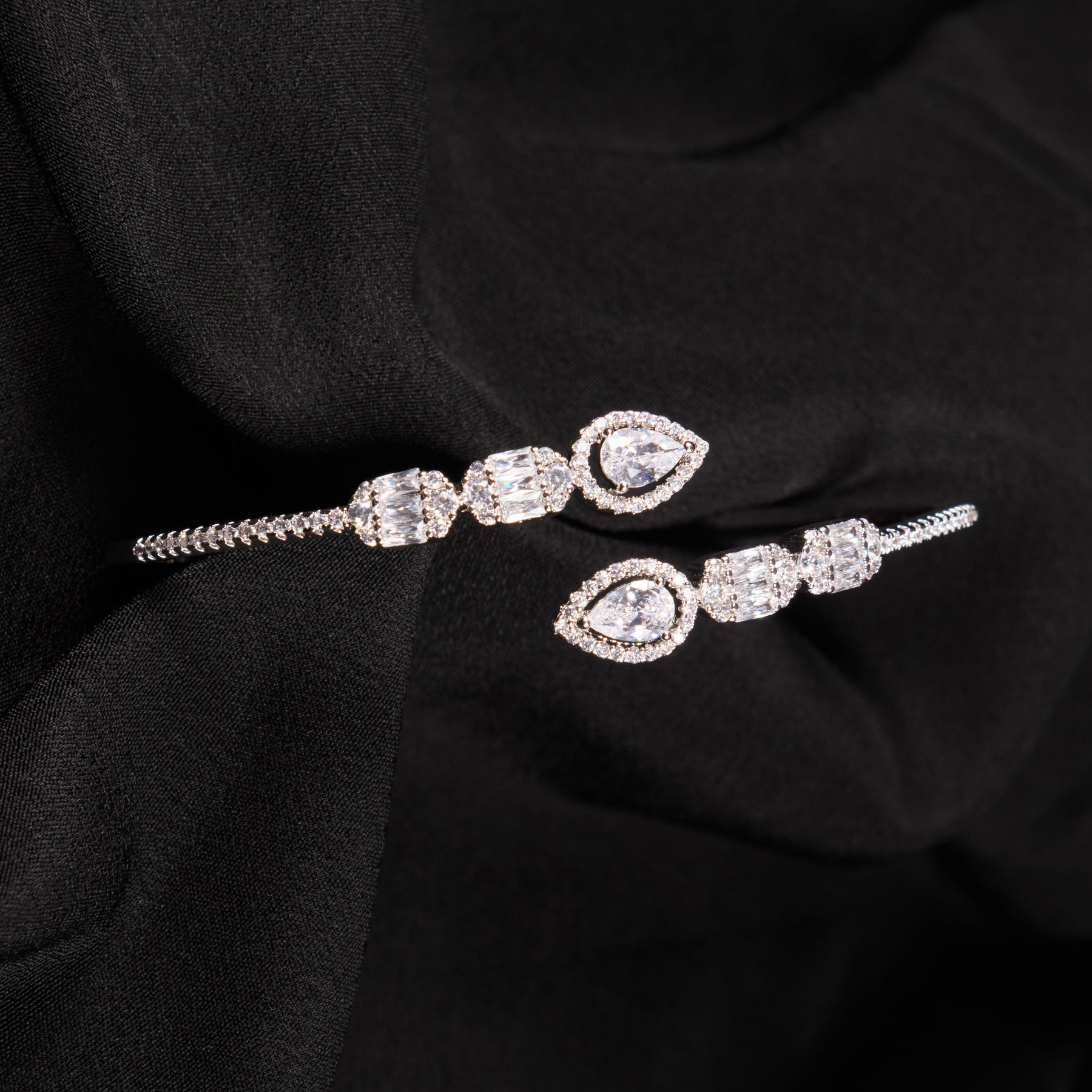 Description: This sleek zirconia cuff bracelet features a minimal open design enhanced with a touch of colour through its elegantly placed coloured stone accents. The sparkling zirconia adds a refined shimmer, giving it a chic and polished finish. Lightweight and comfortable, it makes for a perfect everyday accessory that can also complement festive outfits. A subtle yet stylish piece for those who appreciate modern elegance with a hint of colour.