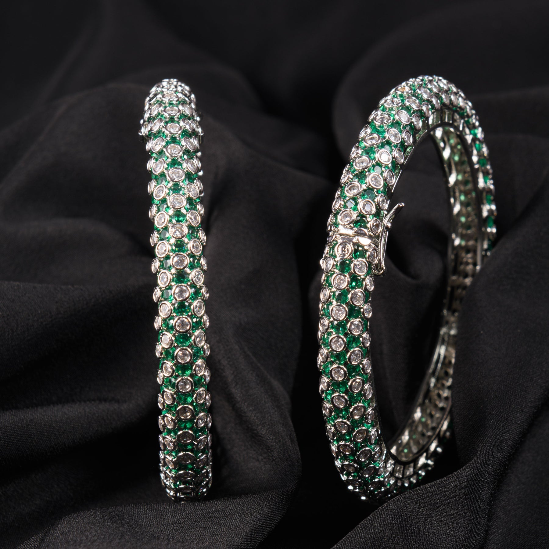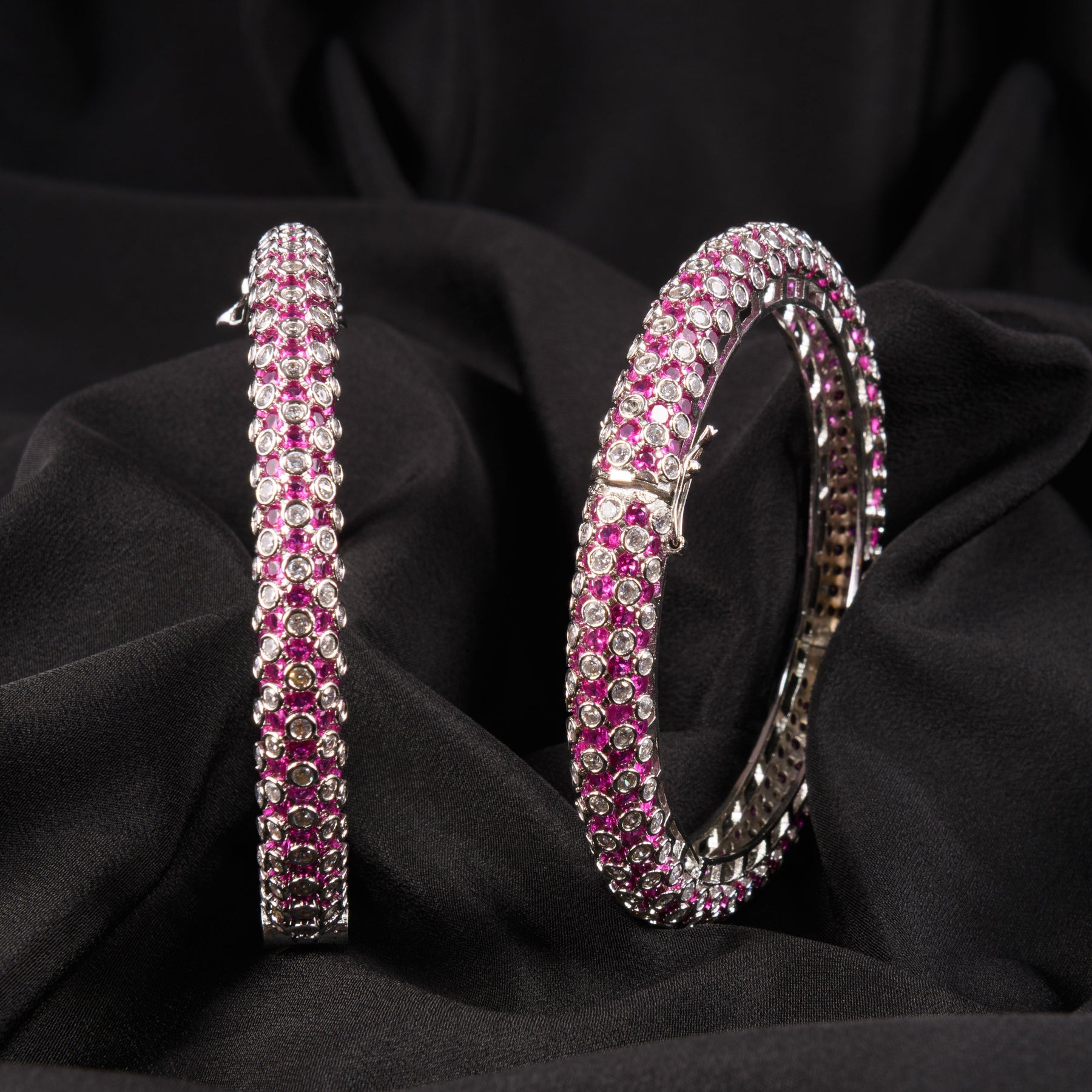 Description: This striking zirconia bangle is beautifully adorned with sparkling stones, enhanced with coloured accents that add a vibrant and luxurious touch. Its sleek yet statement-making design makes it perfect for festive occasions and elegant celebrations. A gorgeous pick for those who love jewellery that blends sparkle with a pop of colour.