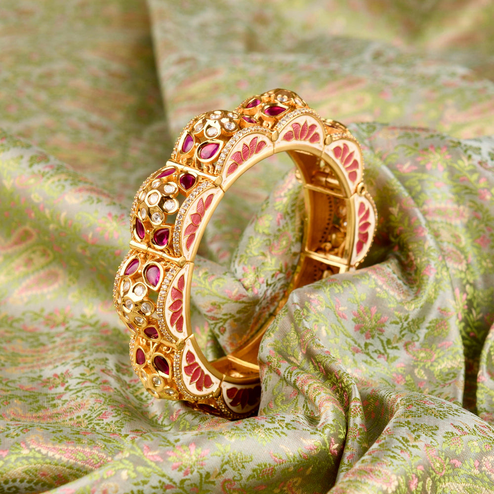 Description: Add a touch of timeless elegance to your bridal ensemble with these statement wedding wear polki bangles,