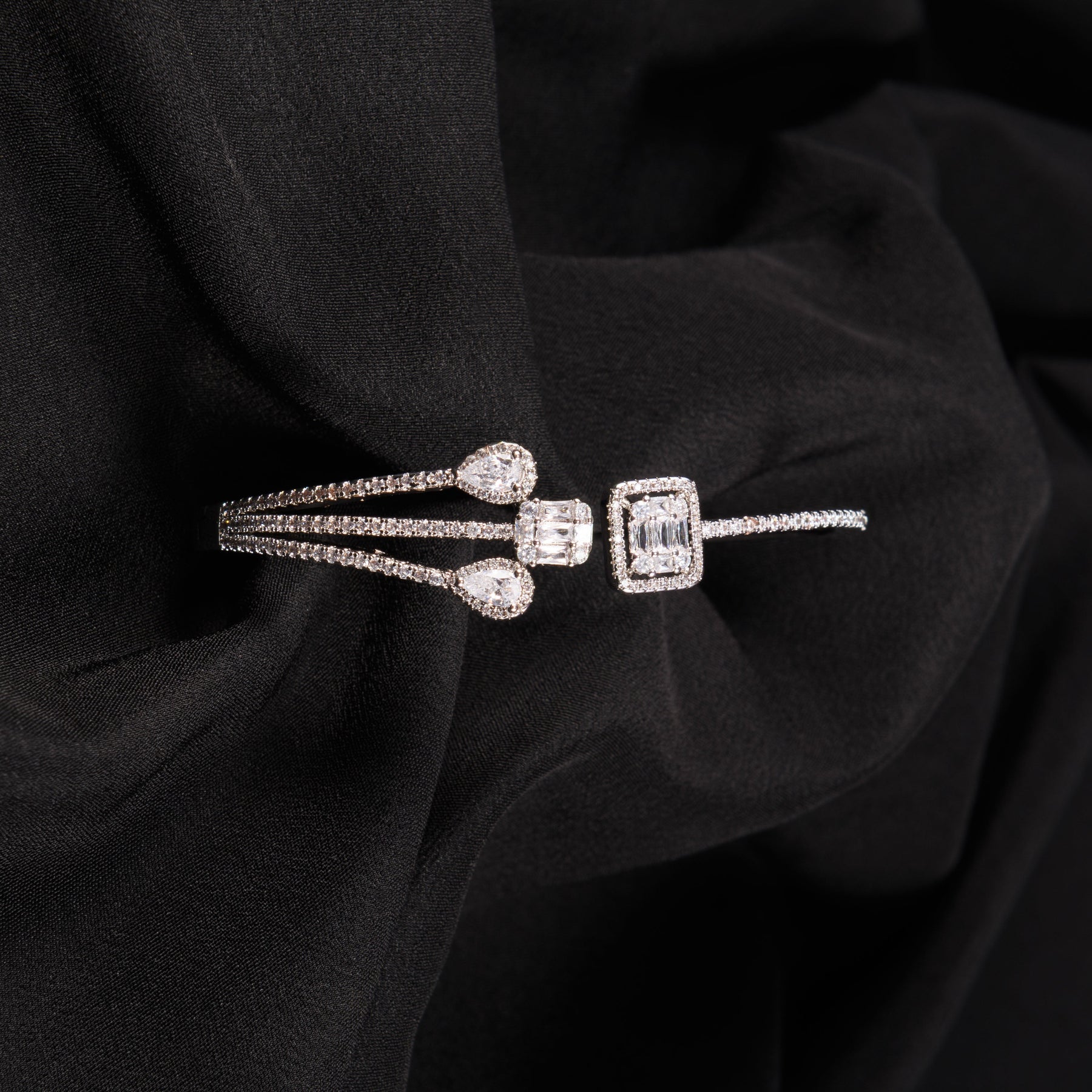 Description: This stylish zirconia cuff bracelet features a modern open silhouette adorned with sparkling stones for a chic and polished look. Its sleek design makes it easy to pair with both contemporary and traditional outfits, adding just the right touch of shine. Lightweight and comfortable, it wraps elegantly around the wrist without feeling bulky. A perfect accessory for those who love effortless style with a hint of glamour.