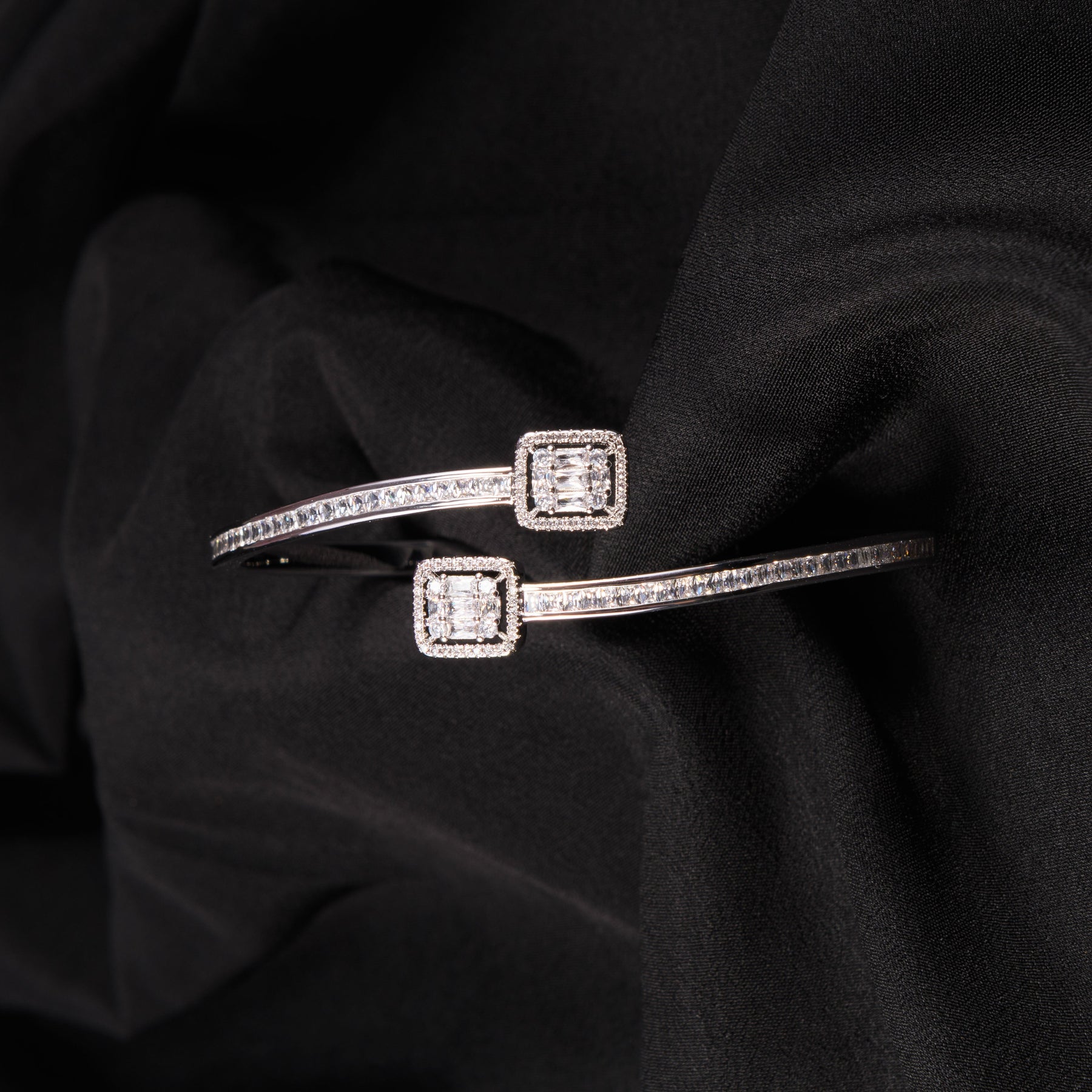 Description: This versatile zirconia cuff bracelet features a sleek and timeless design accented with subtle sparkle, making it easy to pair with both ethnic and contemporary outfits. Its open cuff style ensures a comfortable fit while adding a refined touch to the wrist. Lightweight and elegant, it transitions effortlessly from everyday wear to special occasions. A must-have piece for those who love jewellery that blends simplicity with sophistication.