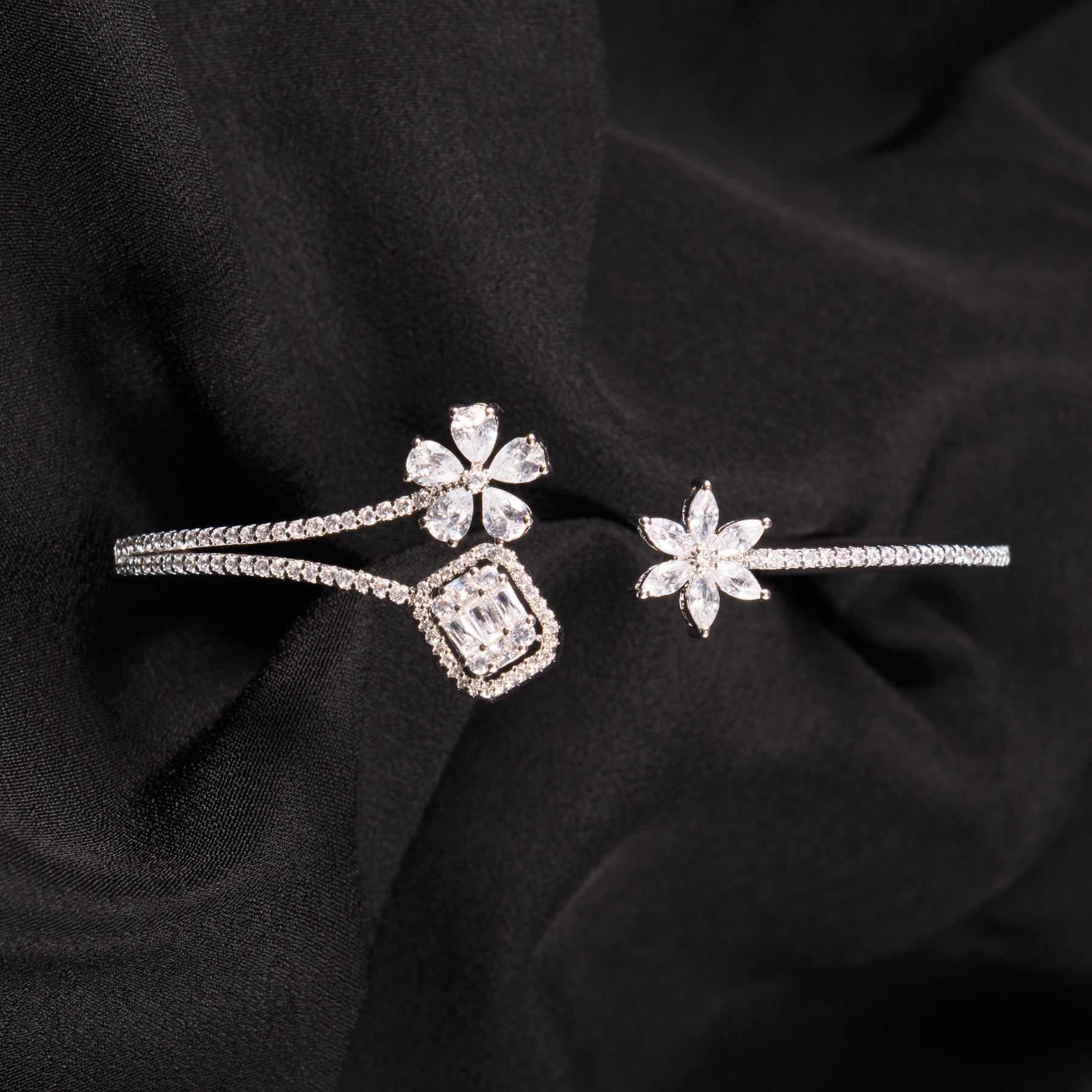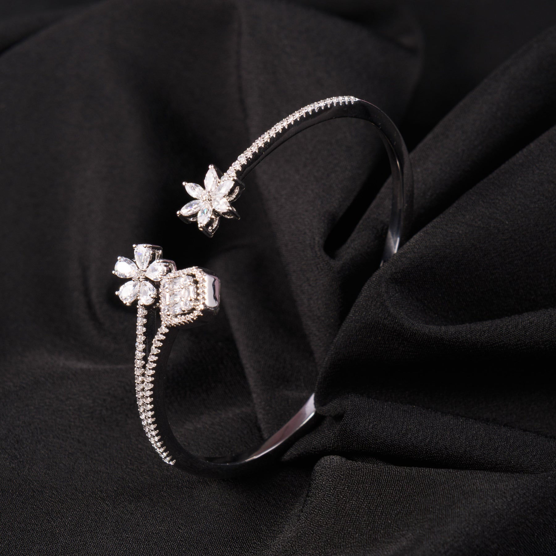Description: This bracelet beautifully balances delicacy and impact, featuring a sleek cuff design adorned with sparkling zirconia for a refined statement look. Its lightweight structure ensures comfortable wear while still drawing attention with its elegant shine. Perfect for those who prefer subtle glamour with a hint of boldness. Ideal for festive occasions, evening outings, or elevated everyday styling.