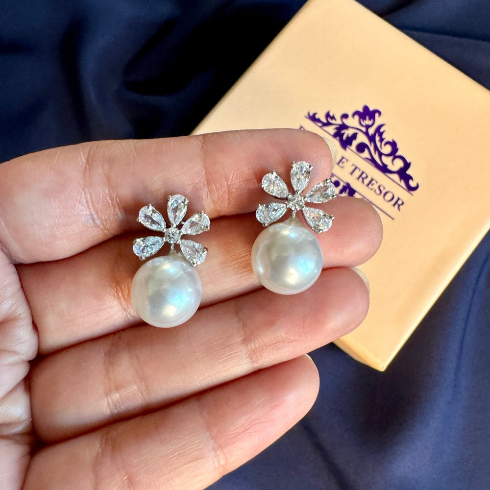 Description: These charming flower pearl earrings beautifully combine floral design with the classic elegance of pearls.They are very lightweight and comfortable to wear.