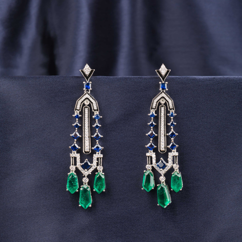 Description: These gorgeous earrings can elevate your entire look, adding a touch of sophistication and glamour. With their cascading design and sparkling semiprecious stones it creates a dramatic yet refined statement that pairs beautifully with evening gowns or cocktail dresses.