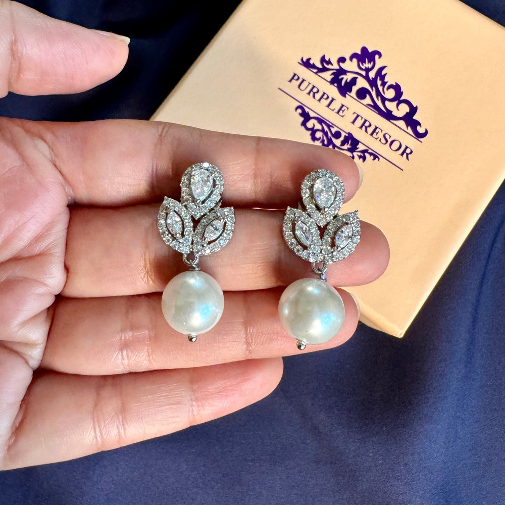 Description: These diamond and pearl earrings beautifully blend elegance with simplicity. The design is lightweight and comfortable, making them perfect for everyday wear.