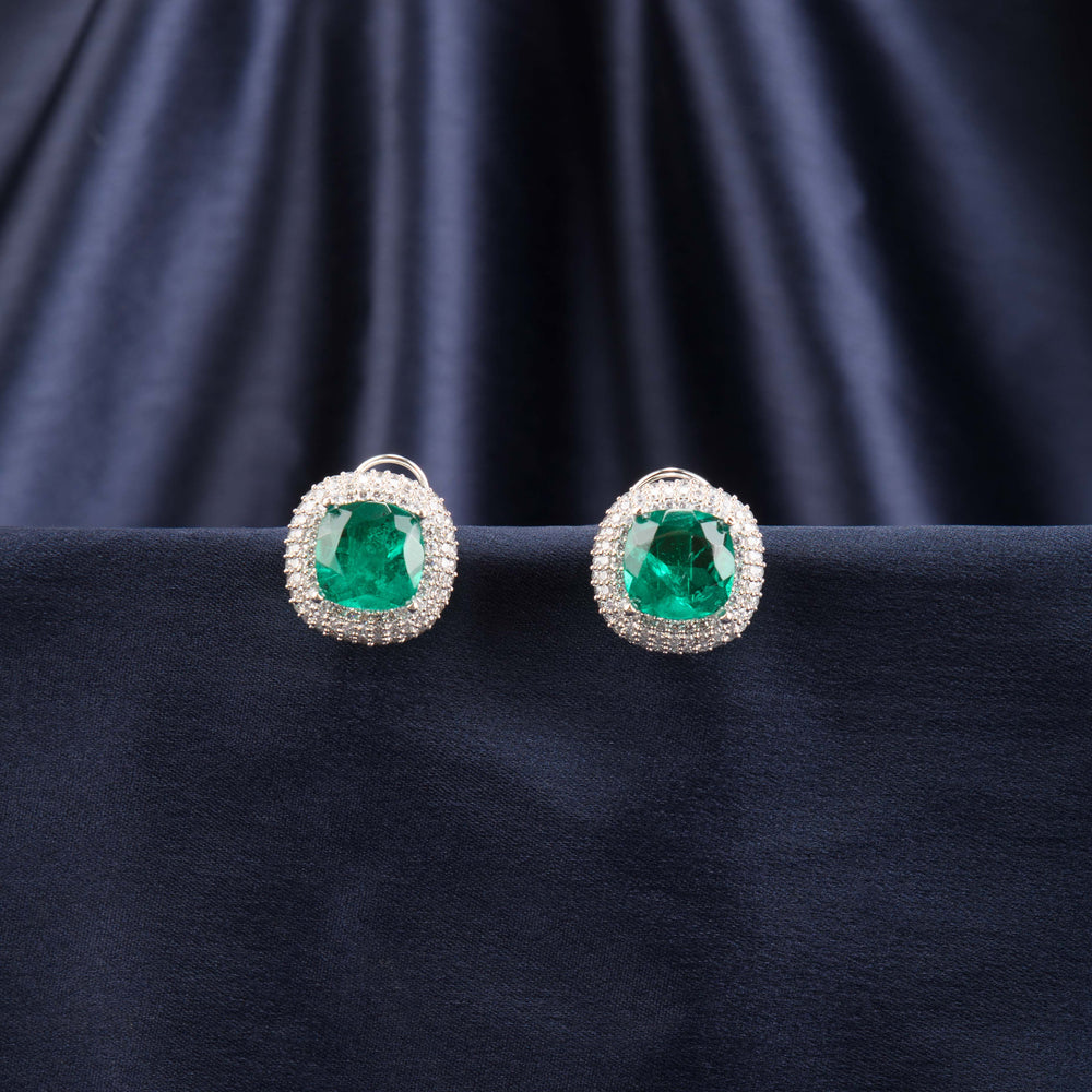Description: These classic emerald and diamond studs are bold and captivating pieces that elevate any ensemble with their striking brilliance and modern design, drawing attention while maintaining a sense of elegance.