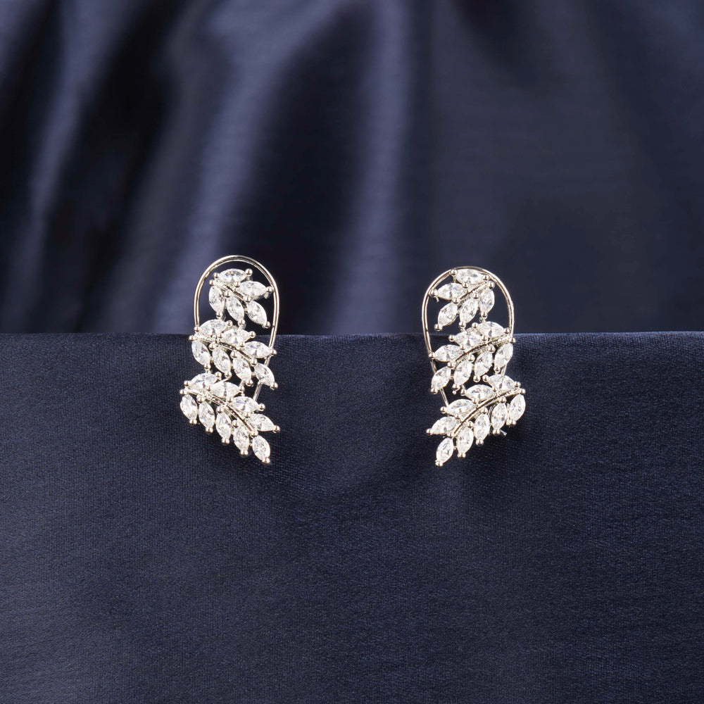 Description: This beautiful piece of jewellery is a delicate earring designed with small leaf motifs with sparkling zirconias set in a prong setting. These earrings effortlessly elevate your style with a touch of nature-inspired beauty.