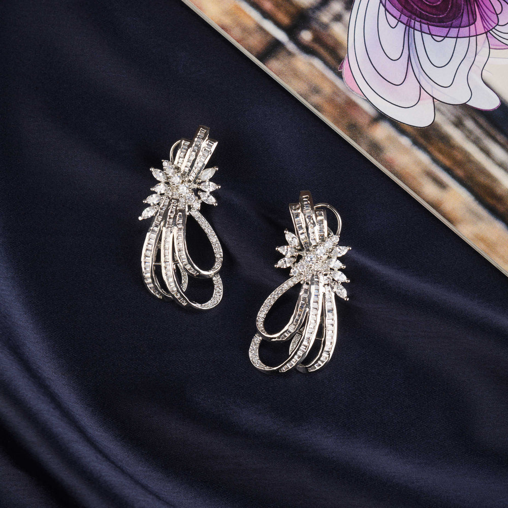 Description: This beautiful pair of small cocktail earring featuring a design of interlocking loops adorned with sparkling zirconias, creats a subtle yet elegant statement.
