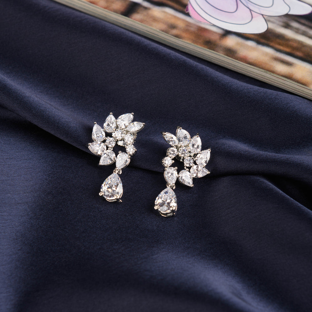 Description: This delicate diamond earring features a cluster of pear-shaped and round diamonds, creating a sparkling and elegant look. It is sure to add a touch of glamour to any outfit.