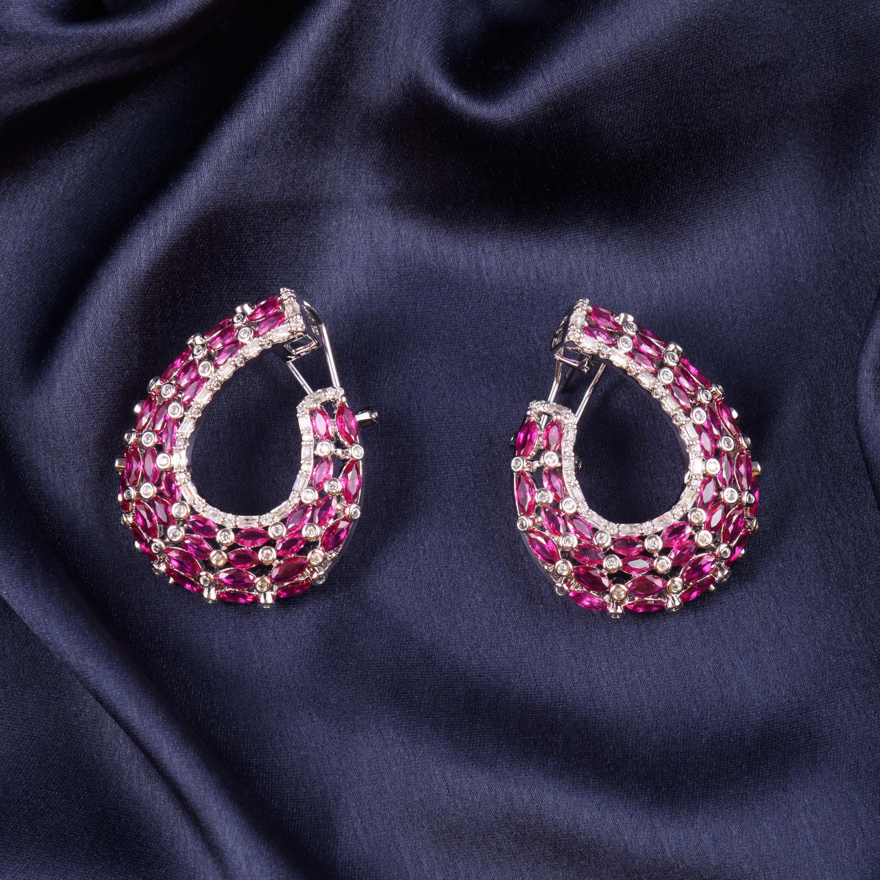Description: These statement earrings feature a bold arrangement of sparkling zirconia stones enhanced with coloured accents for a vibrant and luxurious finish. The combination of shimmer and colour adds depth and personality, making them perfect for festive and special occasions. Designed to stand out, they bring instant glamour to any outfit.