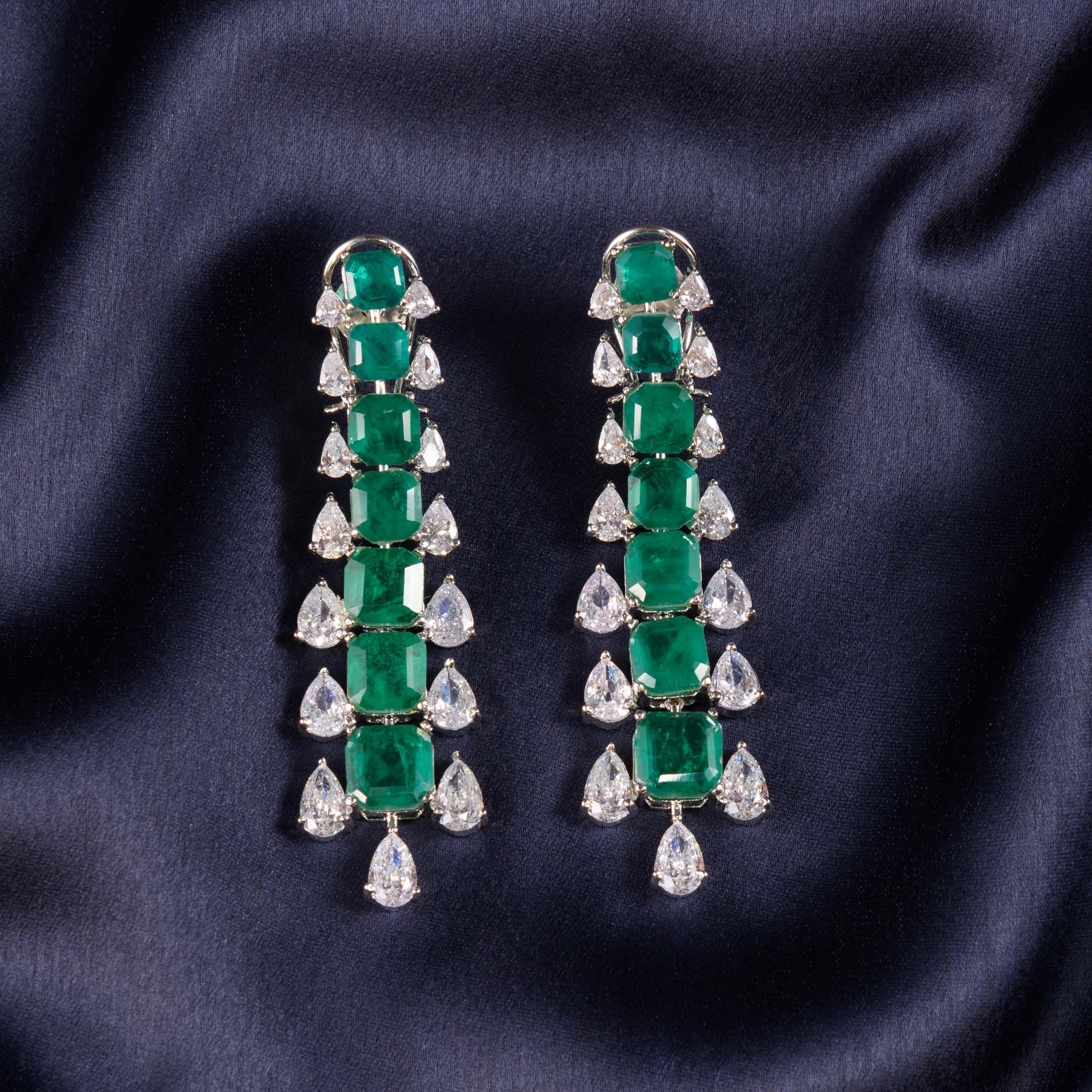 Description: These bold zirconia earrings feature a striking design embellished with brilliantly cut stones and highlighted with coloured accents for a vibrant touch. The mix of sparkle and colour gives them a luxurious yet trendy appeal, perfect for making a statement. A stunning choice for those who love jewellery that blends glamour with personality.