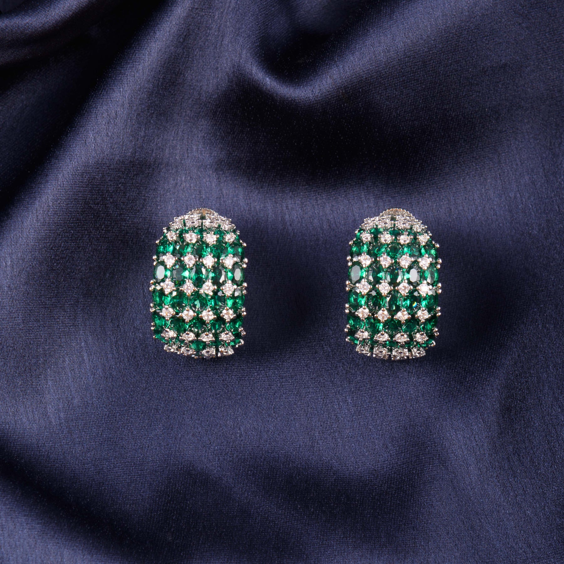 Description: Designed to stand out, these earrings feature a bold half-round silhouette embellished with dazzling zirconia stones. Their statement design adds instant glamour, making them perfect for parties and casual outings. A radiant choice for women who love jewellery that makes an impression.