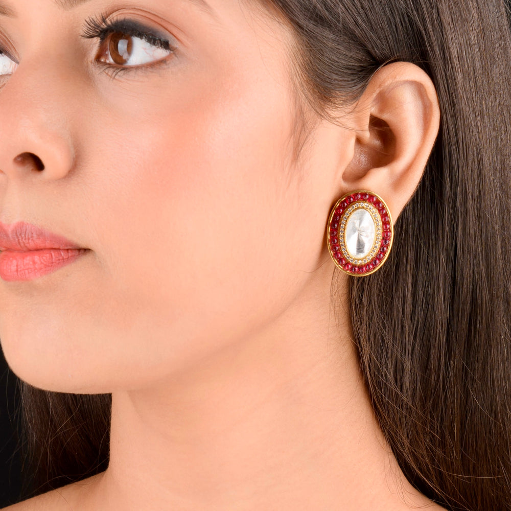 Ira Moissanite Ruby Polki Studs