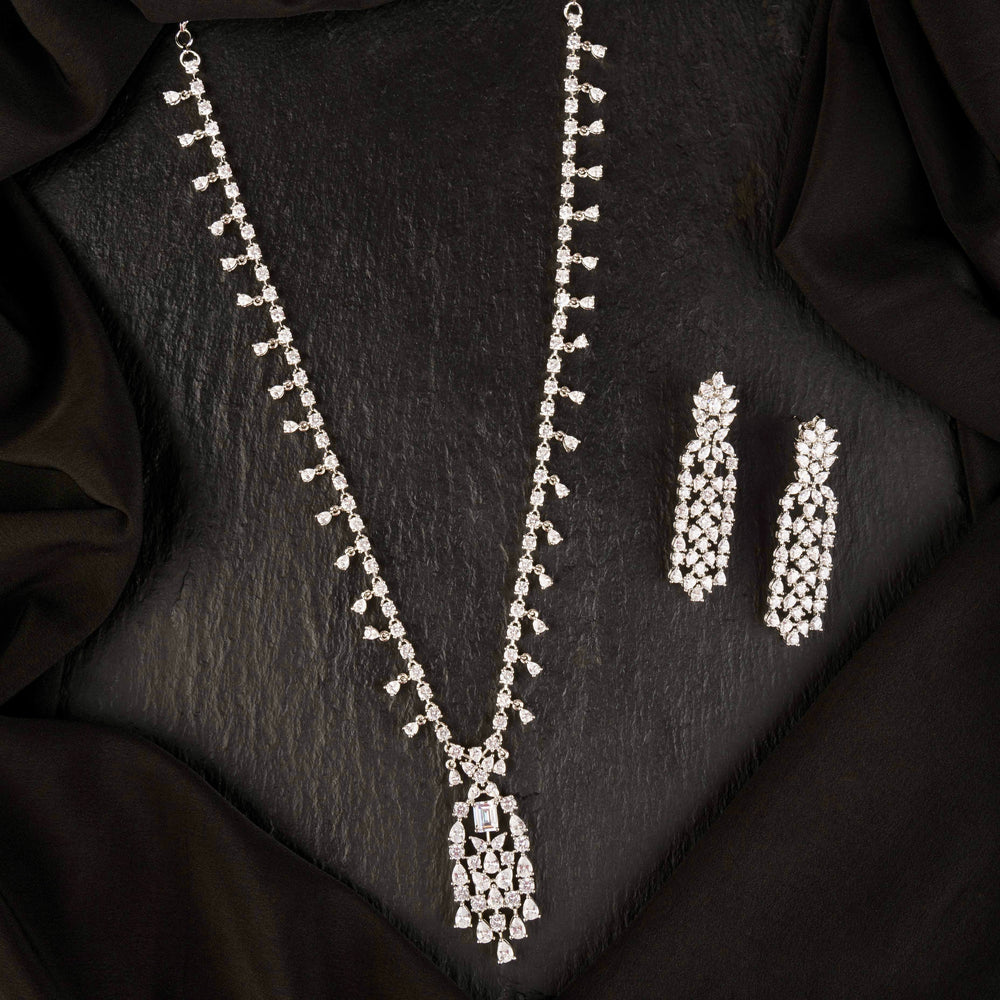 Description: Our Maliana Diamond Necklace Set is a dainty yet statement piece. The length of the necklace allows for versatile styling; it can be worn layered with other necklaces for a trendy look or as a standalone piece for a more classic elegance.