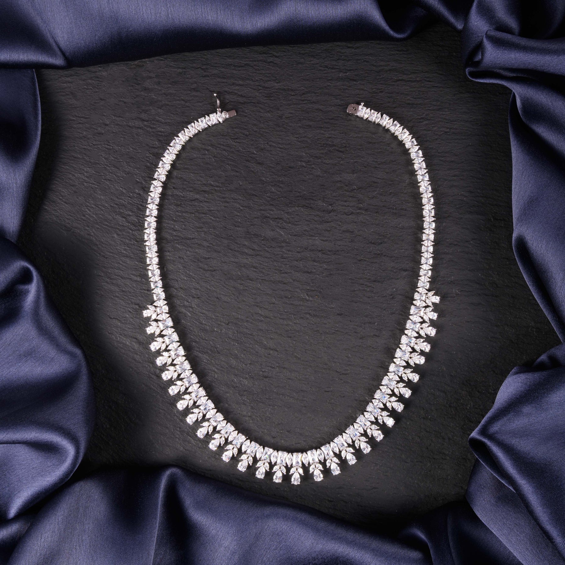 Description: Crafted to dazzle, this necklace set features radiant zirconia stones that shine with exceptional brilliance. The vibrant sparkle makes it perfect for festive celebrations, parties, and grand occasions. Paired with matching earrings, it offers a complete look of glamour and elegance. A striking piece for women who love jewellery that stands out.