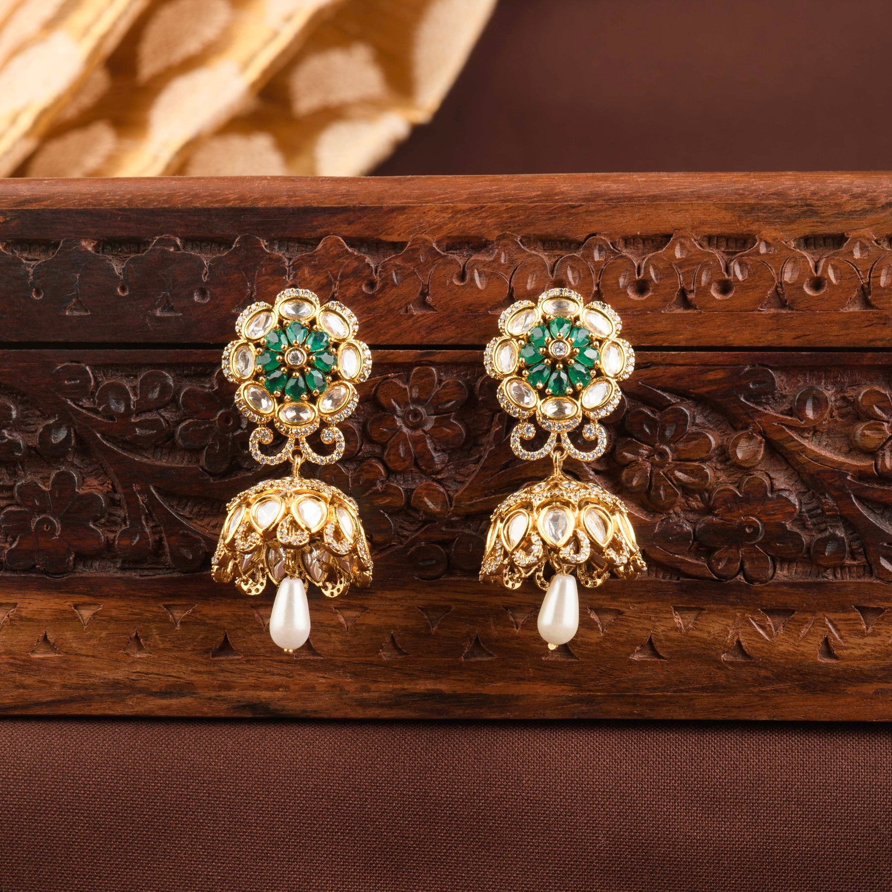 Description: This elegant polki choker set showcases subtle brilliance with delicate pearl strand accents on the sides. Lightweight yet striking, it offers a graceful statement without overpowering the look. Perfect for weddings, intimate celebrations, and modern-heritage styling.