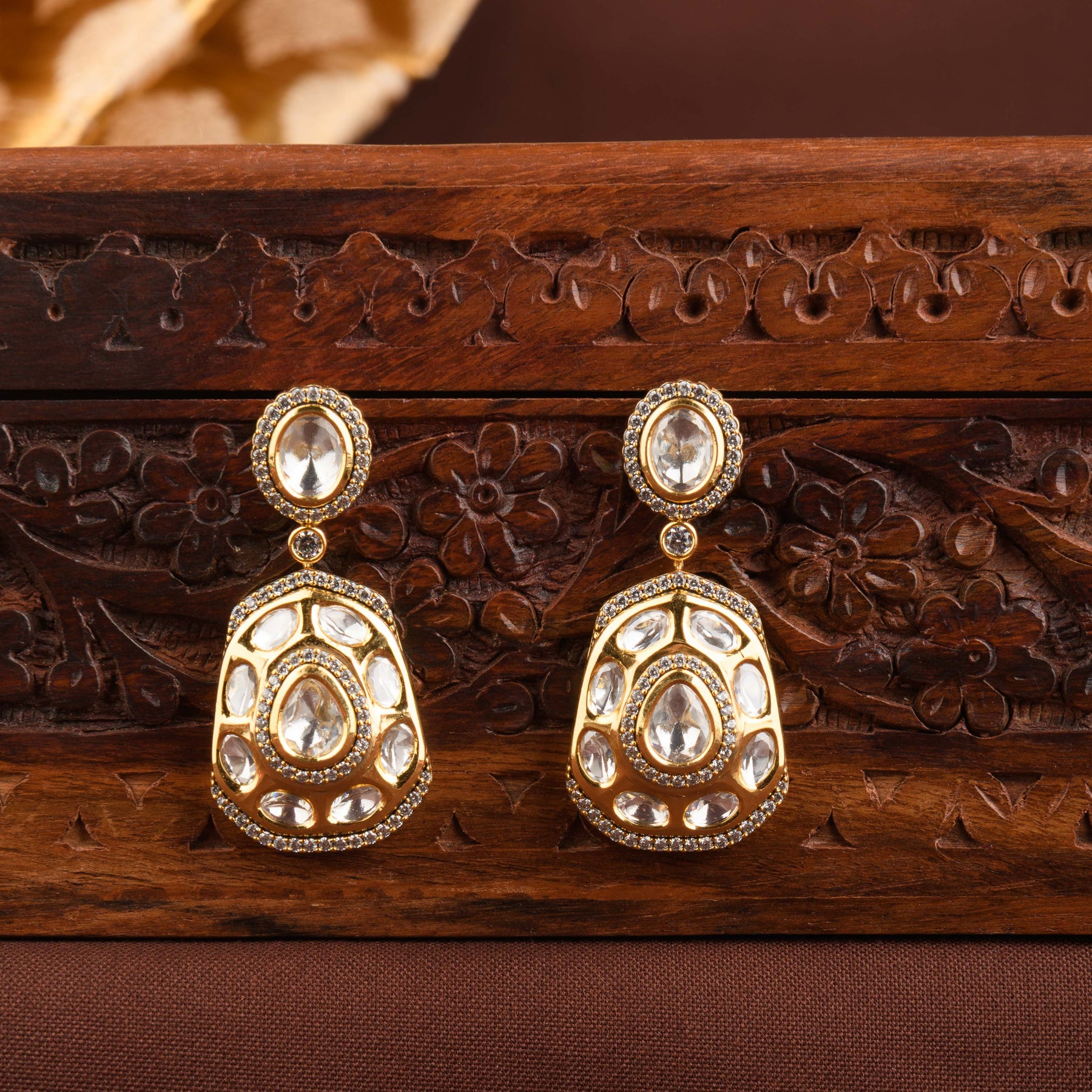 Description: A striking statement polki necklace set crafted to command attention. Featuring bold polki stones and intricate detailing, this design exudes regal elegance. A timeless piece that elevates any traditional ensemble.